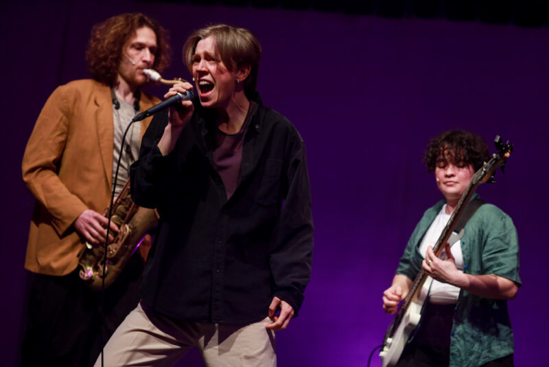 Musik gibt dem Theaterabend den nötigen Drive: Jakob Jentges, Elina Brams Ritzau, Bruna Cabral (v.l.) – Foto: Niklas Berg / FWT