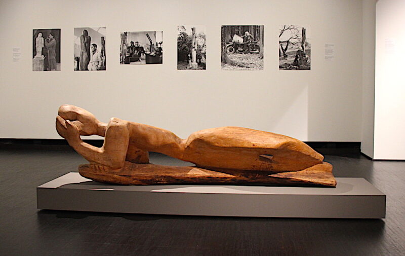 „Louise Stomps – Konturen des Inneren“: Blick in die Ausstellung. Im Vordergrund die Plastik „Der Sklave“ (1965, Ahorn).