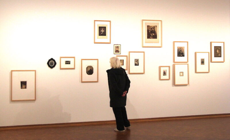 Blick in die Ausstellung „Smile!“ – welches Foto zeigt lächelnde Menschen, welches ernst blickende? – Foto: JS